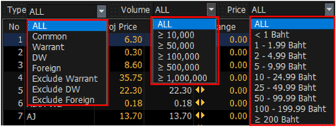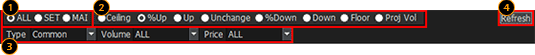 Select information to view among 'Celling, %Up, Up, Unchange, %Down, Down, Floor and Proj Vol’.