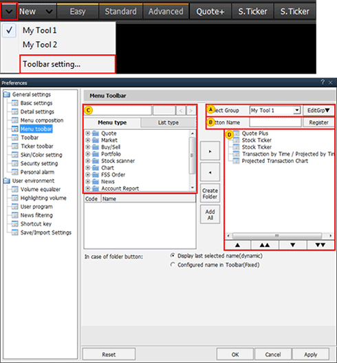 button to select ‘Resister new group’ menu and enter name of the toolbar group.