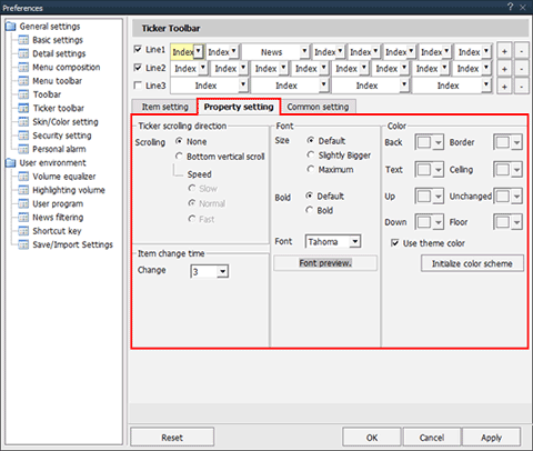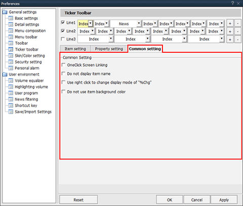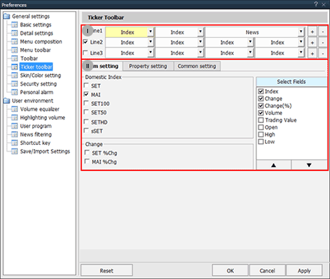 This is an area to select items provided on the ticker toolbar. Select fields in