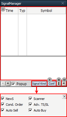 button to open the ‘Signal Manager’ pop-up window and check signals that appear in news and stocks