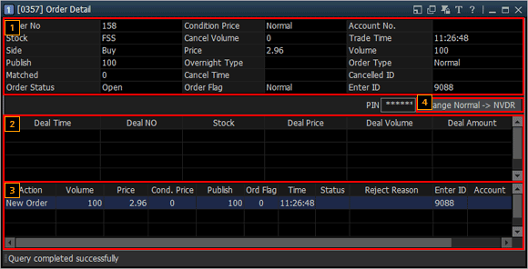 ข้อมูลคำสั่งซื้อขาย เช่น “คำสั่ง จำนวนซื้อขาย ราคา และข้อมูลอื่น” สามารถดูได้ที่นี่