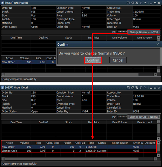 เพื่อเปลี่ยนหลักทรัพย์สามัญไปเป็น NVDR (NVDR เป็นหลักทรัพท์ที่ผู้ถือหุ้นไม่มีสิทธิ์ออกคะแนนเสียง) และคลิกที่ปุ่ม